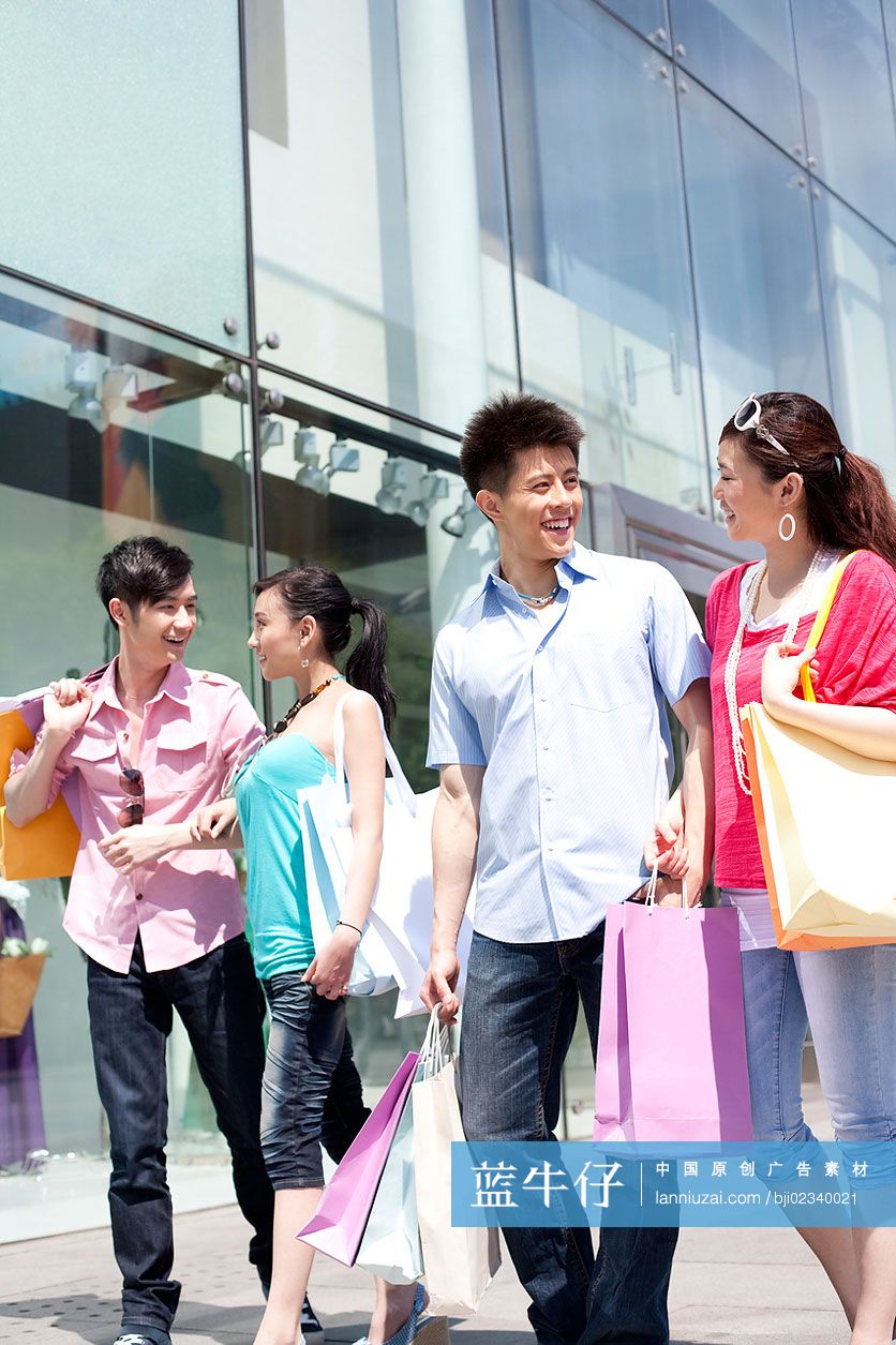Happy Young Chinese Friends With Shopping Bags High res Stock Photo For
